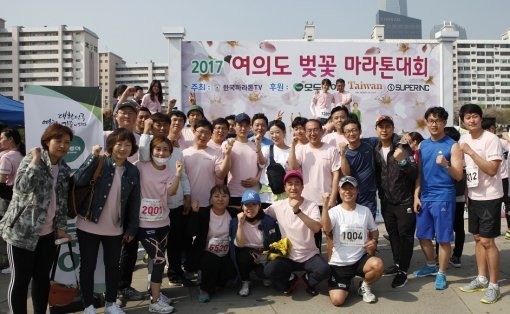 모두투어 임직원이 지난 15일 여의도 한강 시민공원에서 열린 ‘2017 여의도 벚꽃 마라톤 대회’에 단체로 참가해 친목과 건강을 다지는 시간을 가졌다. 이번 대회는 한국 마라톤 TV가 주최하고 모두투어, 타이완 관광청 그리고 슈퍼링크가 후원하였으며, 총참가자 규모는 약 5000명에 달했다.