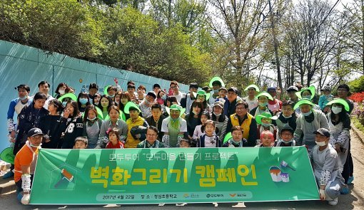 - 모두투어 임직원 및 가족 약 80여 명 참여, 정심초교 등/하교길 담장 벽화 그리기 진행