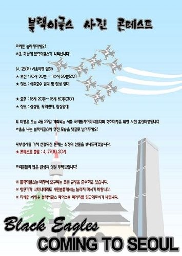 공군 특수비행팀은 앞서 이날 10 30분~10시 50분까지 20분간의 서울상공 비행 일정을 알리면서 "서울을 나는 블랙이글스의 멋진 모습을 댓글로 남겨 달라"고 공지했었다.