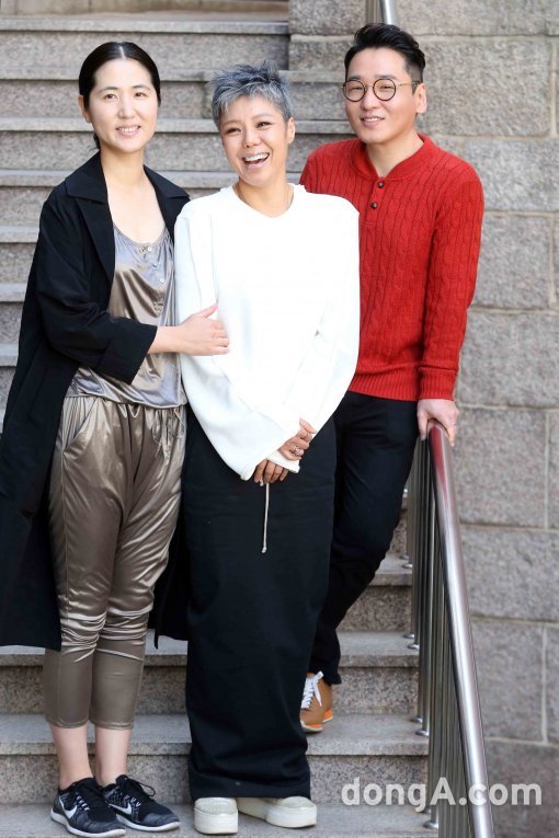 가수 이은미(가운데)가 26일 오후 서울 중구 달개비에서 열린 싱글 앨범 알바트로스 발표 기자간담회에 앞서 포토타임을 하고 있다.