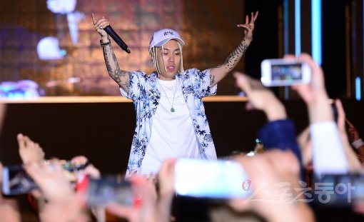 29일 강원도 양양 낙산해수욕장에서 2017 비키니코리아 & 낙산비치페스티벌이 열렸다. 랩퍼 도끼가 열정적인 공연을 펼치고 있다.