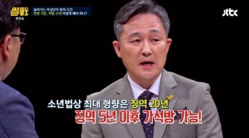 함께 출연한 박지훈 교수 역시 "촉법소년에 대해 무기형 16년~20년형을 완화하는 것은 다시 한 번 검토해 봐야 할 항목"이라며 "미성년자란 이유만으로 형법을 적게 받는 것은 그 자체가 부정의가 아닐까 한다"며 법률시정에 대한 의견을 피력했다.