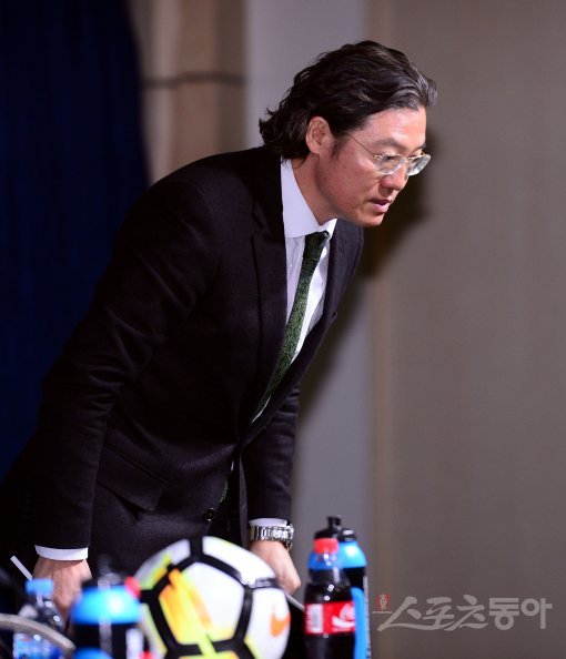 8일 서울 신문로 축구회관에서 김판곤 국가대표감독선임위원장 취임 기자회견이 열렸다. 김판곤 위원장이 취임을 앞두고 인사를 하고 있다.