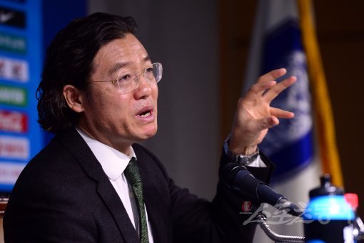 8일 서울 신문로 축구회관에서 김판곤 국가대표감독선임위원장 취임 기자회견이 열렸다. 김판곤 위원장이 취임 소감을 밝히고 있다.