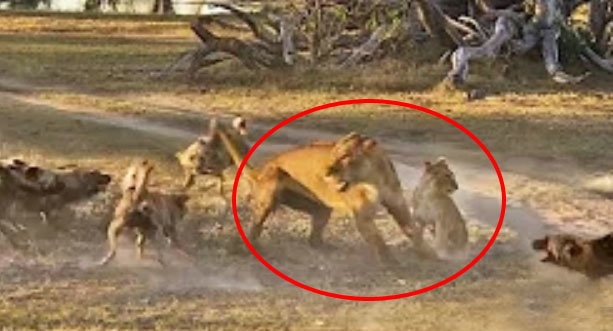 어미 사자는 이에 맞서 온몸을 사방으로 날리며 필사적으로 들개떼를 물리쳤다.