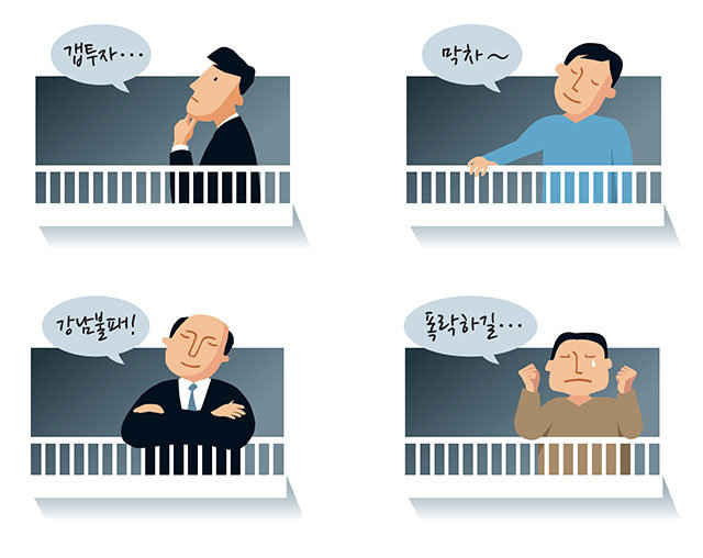 하지만 새 정부 초기라는 게 마음에 걸렸다. “집값만큼은 반드시 잡겠다”고 공언하는 정부를 거스르고 집을 산다는 건 도박 같았다. 기다리면 더 싼값에 살 수 있으리란 기대도 있었다. 그런데 웬걸, 지난 1년간 서울 집값은 6.6% 뛰었다. 점찍어뒀던 아파트의 시세는 10억 원대로 치솟았다. 어제도 그는 고교 동창과 술잔을 기울이다 “아파트 값이 폭락해 버렸으면 좋겠다”고 울분을 토했다.