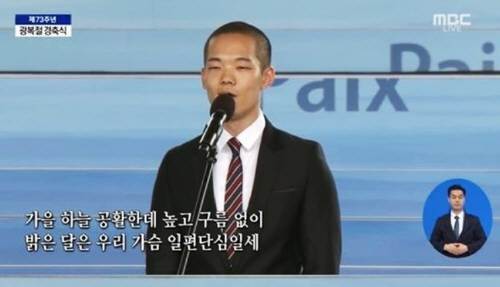 일본군 연기 이정현, 광복절 경축식 ‘애국가’ 제창