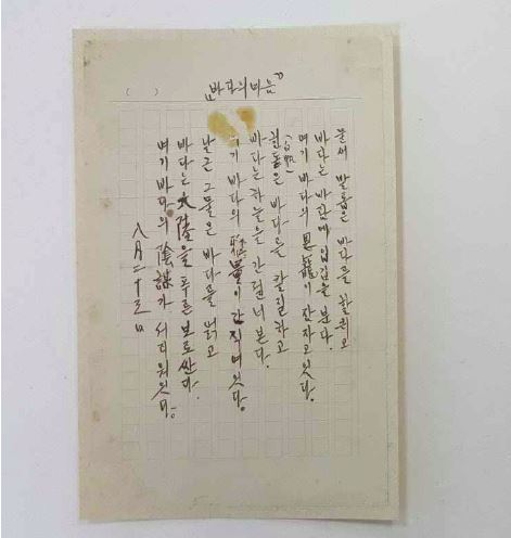 이육사의 친필원고 ‘바다의 마음’은 시인이자 독립운동가인 이육사(1904~1944)가 남긴 시로, 3행 3연으로 구성돼 있다. 이육사의 친필 시 원고는 극히 희귀한 편으로 지난 5월 문화재로 등록한 ‘편복’(??·등록문화재 제713호)외에는 이번에 등록 예고하는 ‘바다의 마음’이 유일한 것으로 전해진다.