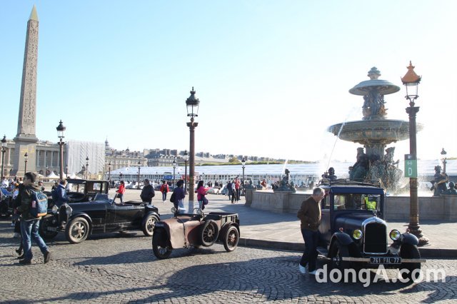 파리 한복판에 위치한 콩코르드 광장. 1792년 프랑스 혁명이 발발한 역사적인 장소인 만큼 언제나 세계 각국에서 온 여행객들로 붐빈다. 지난달 30일 이른 아침부터 광장은 유난히 북적거렸다. 보통 파리 여행 코스로 콩코르드 광장을 둘러본 뒤 샹젤리제 거리를 거쳐 개선문으로 향하는데 마침 이날은 평소 보기 힘든 클래식카 퍼레이드와 전시가 열리면서 이곳을 찾은 사람들 발길을 붙들었다.