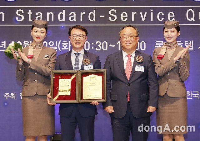 아시아나항공은 ‘2018년 한국서비스품질지수(KS-SQI)’에서 항공부문 1위를 수상했다고 30일 밝혔다. 이날 서울 소공동 롯데호텔 크리스탈볼룸에서는 1위 기업 인증 수여식이 진행됐다.