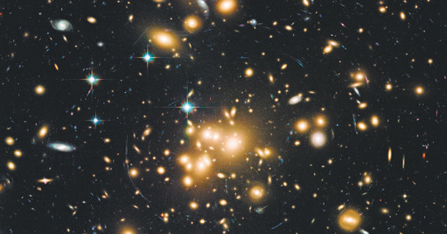 지구에서 22억 광년 떨어진 곳에 위치한 ‘아벨 1689’ 은하단을 허블우주망원경으로 촬영한 영상이다. 가운데에 마치 렌즈로