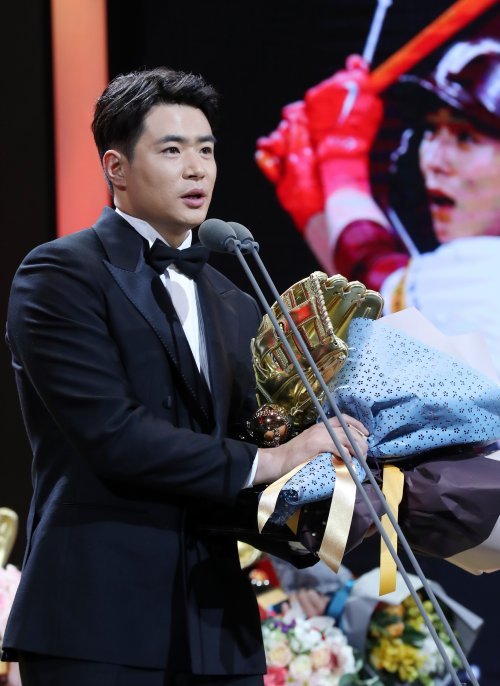 김재환은 11일 서울 포시즌스호텔에서 열린 ‘CMS와 함께하는 2018 동아스포츠대상’ 시상식에서 프로야구 부문 올해의 선수로 선정됐다.