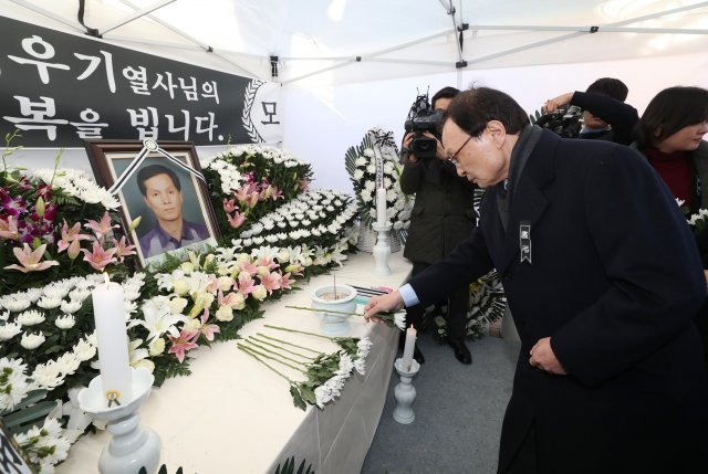 이해찬 더불어민주당 대표는 12일 카카오의 카풀서비스 출시에 항의해 분신한 택시기사 최모(57)씨의 빈소를 찾아 대책 마련을 약속했다.