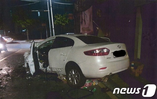 17일 오전 1시40분쯤 부산 해운대구 옛 해운대세무서 앞에서 SM3 운전자 A씨(42·여)가 폐지 손수레를 끌고가던 보행자 B씨(70대 추정·여)와 맞은편 건물을 잇따라 들이받았다.