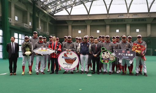 SK 와이번스 퓨처스팀은 16일 일본 스프링캠프 장소인 가모이케 현립구장 실내구장에서 본격적인 훈련을 시작하기에 앞서 가고시마시가 마련한 환영행사에 참석했다.