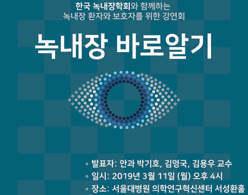 서울대병원은 3월11일 오후 4시 의학연구혁신센터 서성환홀에서 ‘녹내장 바로알기’를 주제로 건강강좌를 개최한다.