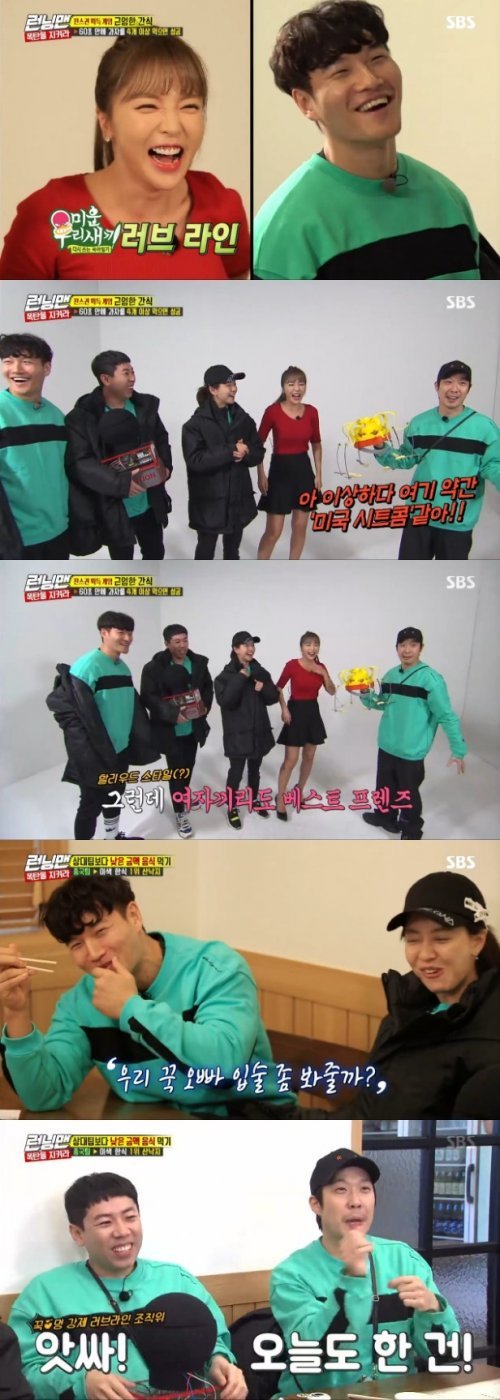 이를 묘하게 지켜보던 하하는 “지금 김종국의 구 러브라인과 현 라브라인이 한 자리에 다 모여있다. 여기 완전 미국 시트콤 같다. ‘미우새’ 러브라인, ‘런닝맨’ 러브라인이 다 있다. 할리우드 아니냐”며 김종국을 놀려 현장을 웃음바다로 만들었다.