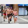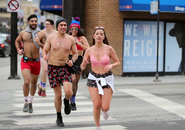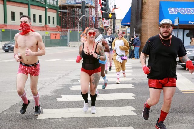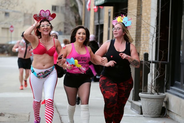 16일(현지시간) 미 일리노이주 시카고에서 신경섬유종증(NF) 연구 기금 마련 자선 행사로 ‘큐피드의 속옷(undie) 달리기’ 행사가 열려 참가자들이 속옷 차림으로 달리기를 하고 있다.