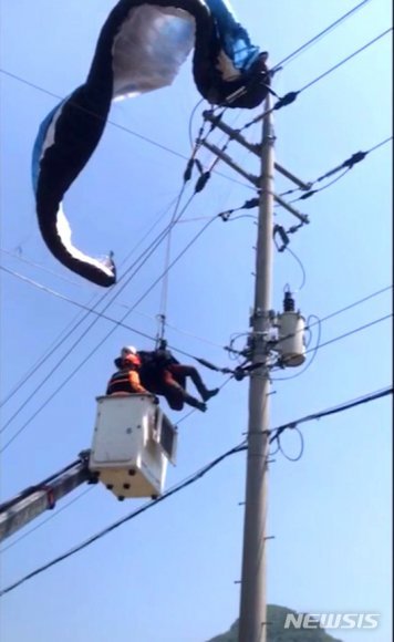 “고압선에 추락한 패러글라이더” 신속 구조…조종사 무사