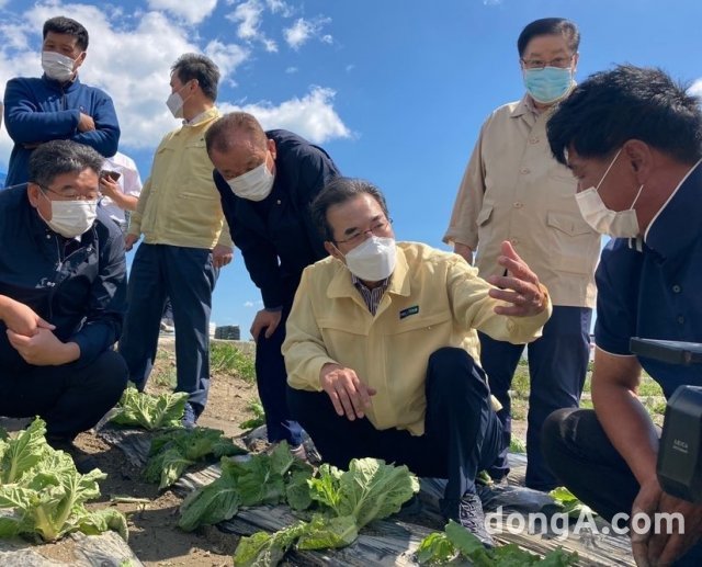이성희 농협중앙회 회장이 8일 제10호 태풍 ‘하이선’ 피해가 발생한 강원 강릉과 양양의 농작물 피해 현장 점검에 나섰다.
