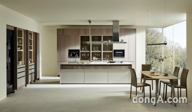한샘 키친바흐의 무늬목 제품은 기존 원목 제품보다 소재의 내구성을 강화하면서도 다양한 컬러로 원목의 아름다움을 구현해 디자인적 완성도를 더했다.