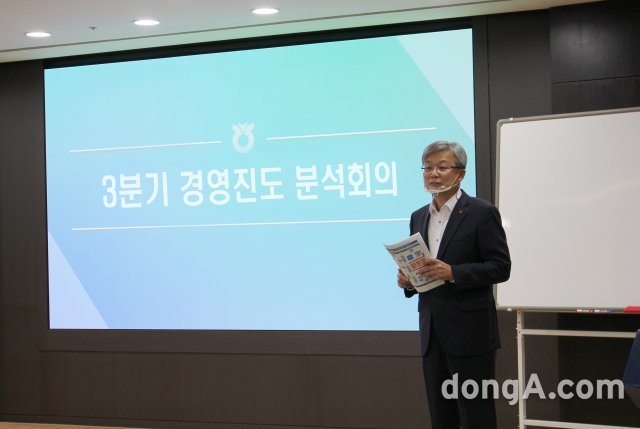 장철훈 농업경제대표이사가 21일 서울 중구 농협중앙회 본관에서 3분기 경영진도 분석회의를 진행하고 있다.
