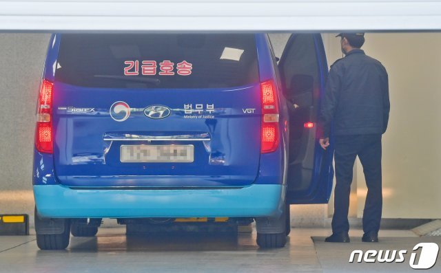 2일 경기 수원시 영통구 수원지방법원에서 열리는 공판에 출석하는 이춘재가 탑승한 것으로 추정되는 차량이 도착하고 있다. 10대부터 70대까지 여성을 강간·살해·유기한 ‘이춘재 연쇄살인사건’의 피의자 이춘재(56)는 34년 만에 이 사건의 실체적 진실을 밝히기 위해 법정에 증인으로 출석한다. 2020.11.2/뉴스1 © News1