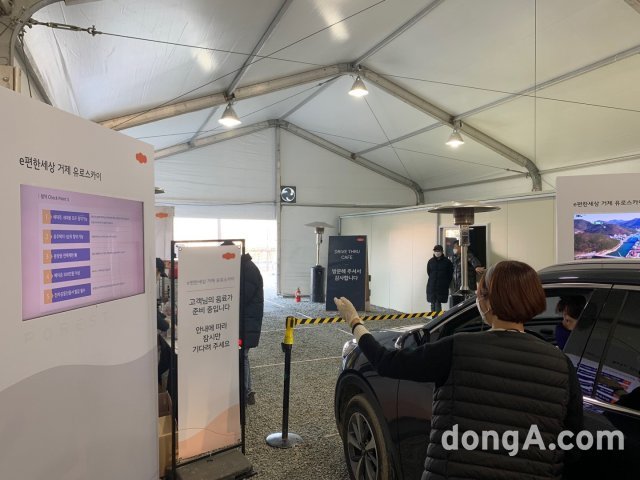DL이앤씨 드라이브스루 서비스는 e편한세상 거제 유로스카이 홍보관 주차장을 활용해 진행 중이다. 방문 고객들은 입구에서 이동 경로를 안내 받은 후 차량 안에서 온라인 회원가입을 진행함과 동시에 원하는 음료 서비스를 받는다. 차를 타고 홍보영상 감상 존으로 가면 영상을 통해 e편한세상 거제 유로스카이의 다양한 정보를 얻을 수 있다.