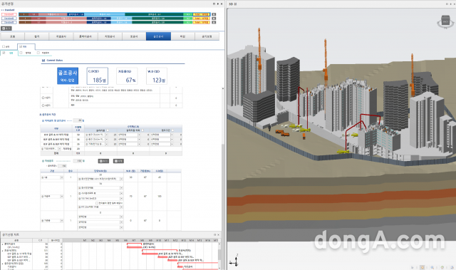 지반과 지형, 도면, 골조 정보등을 입력하면 도면을 자동으로 인식해 3D 모델링이 구현되며 프로그램에 저장된 23종의 공법과 42종의 장비 등을 선택하면 공사 물량과 공사 시간을 산출할 수 있다.
