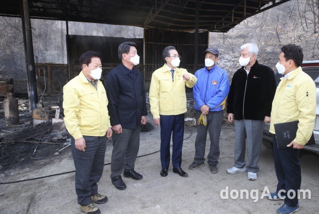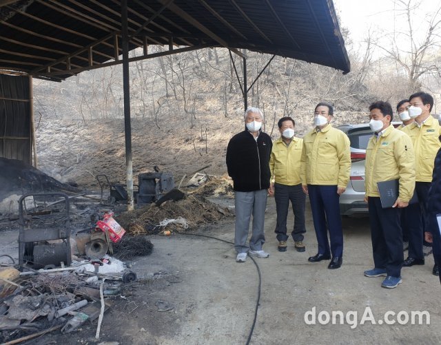 이성희 농협중앙회장은 22일 경북 안동과 예천 등지에서 발생한 산불피해 현장을 찾아 농업인을 위로하고 피해복구 지원책을 마련하기 위해 피해 상황을 점검했다.