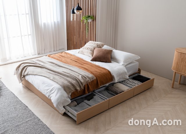 모노 무헤드 수납침대의 경우 신규 색상 추가와 함께 수납 공간 높이를 21cm로 키웠다. 저가형의 일반적인 수납 침대와는 달리 서랍 하단은 틈 사이로 먼지가 들어가지 않게 마감한 것이 특징이다.