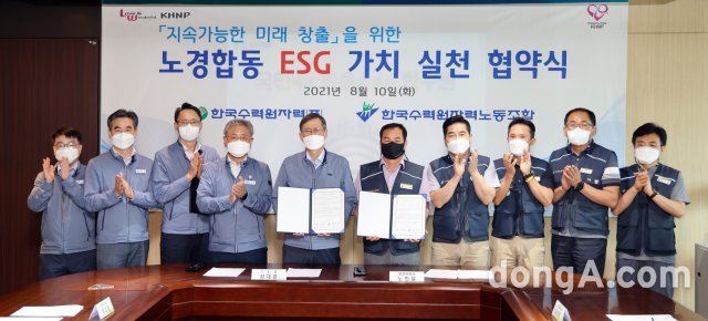 한국수력원자력 노사대표는 경주 한수원 본사에서 ‘노사합동 ESG 가치 실천 협약’을 맺었다고 10일 밝혔다.
