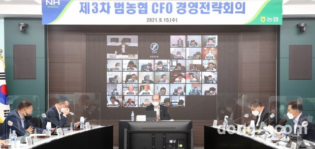 농협중앙회가 15일 서울 중구 농협중앙회 본관에서 유찬형 부회장 주관 ‘2021년 제3차 범농협 CFO 경영전략회의’를 화상으로 개최했다.