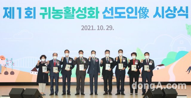 이날 전수식은 이성희 농협중앙회장과 수상대상자인 엄태준 이천시장, 장신상 횡성군수, 조병옥 음성군수, 김돈곤 청양군수, 박성일 완주군수, 송귀근 고흥군수, 이승율 청도군수, 서춘수 함양군수 등 지자체장이 참석했다. 행사는 홍보관 순람을 시작으로 귀농성공사례 영상 시청, 감사패 전수 등의 순으로 진행됐다.