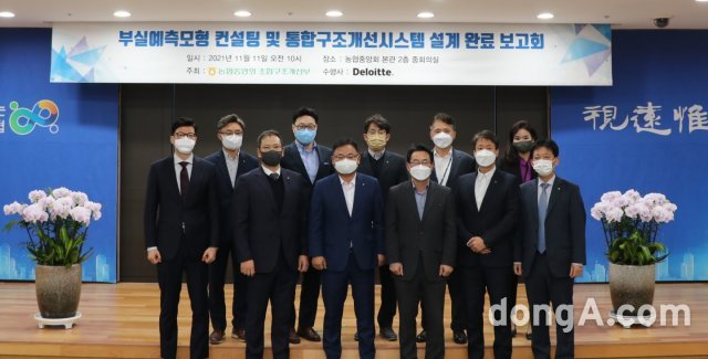 농협중앙회 조합구조개선부가 11일 서울 중구 본관에서 ‘부실예측모형 컨설팅 및 통합구조개선시스템 설계 완료 보고회’를 개최했다.