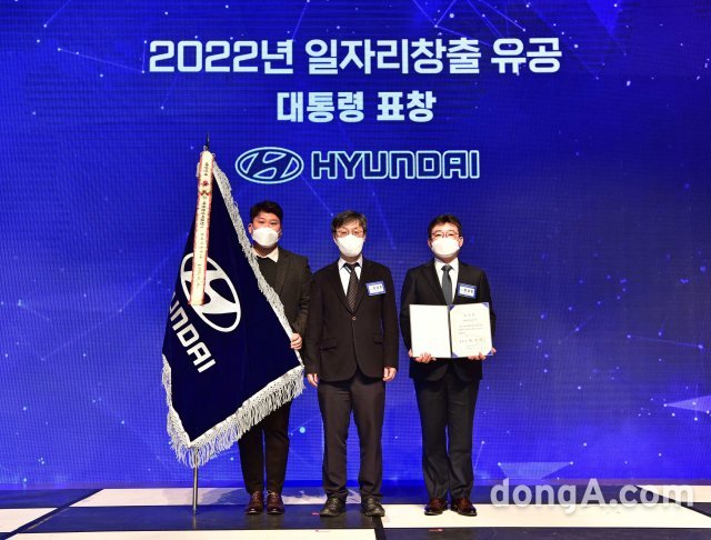 현대자동차가 ‘2022년 일자리 창출 유공 정부포상 수여식’에서 청년고용촉진 부문 대통령 표창을 수상했다.