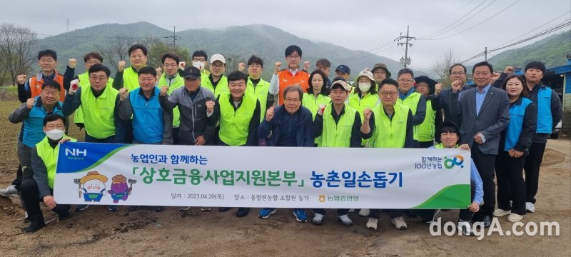 [포토]농협임직원, 농촌일손돕기로 영농철 일손 보태