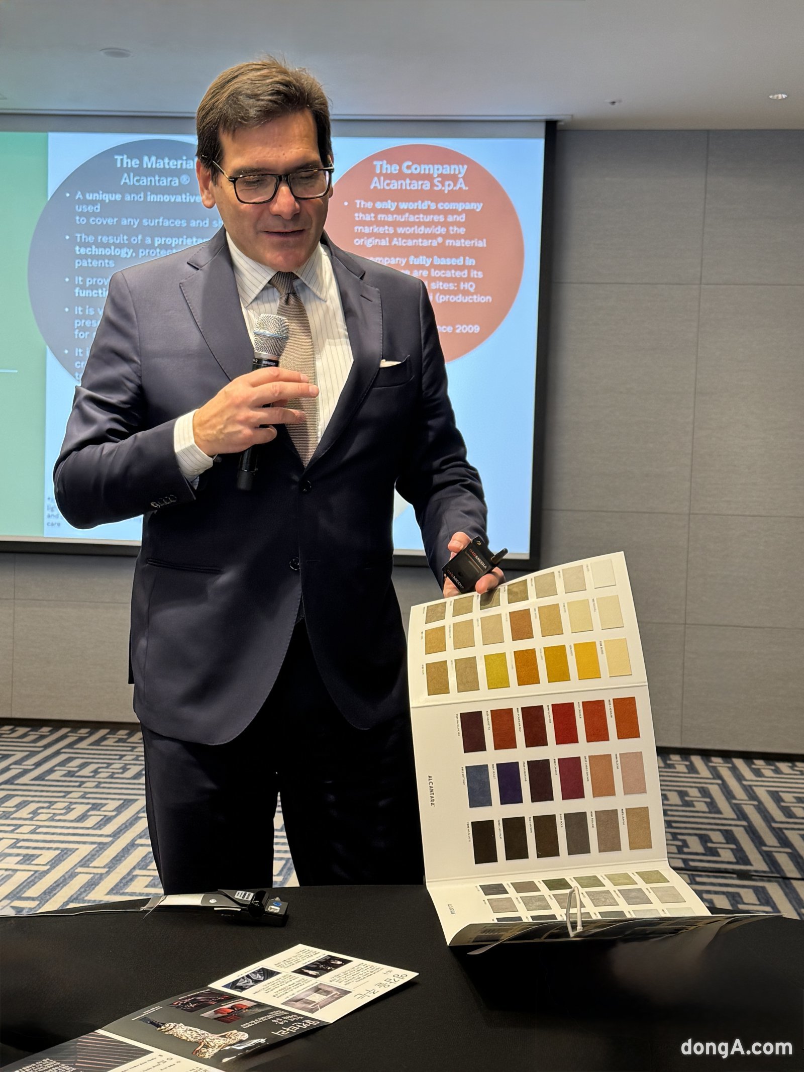 이날 행사를 주재한 유지니오 롤리 알칸타라 CEO는 “알칸타라는 자동차·패션·인테리어·첨단기기 등 다양한 산업군의 디자인과 성능의 경계를 허무는 이탈리아 기술력과 예술적 감각이 집약된 결과물”이라며 “전량 이탈리아에서 생산되기 때문에 고객사들에게 신뢰도가 상당히 높다“고 말했다.