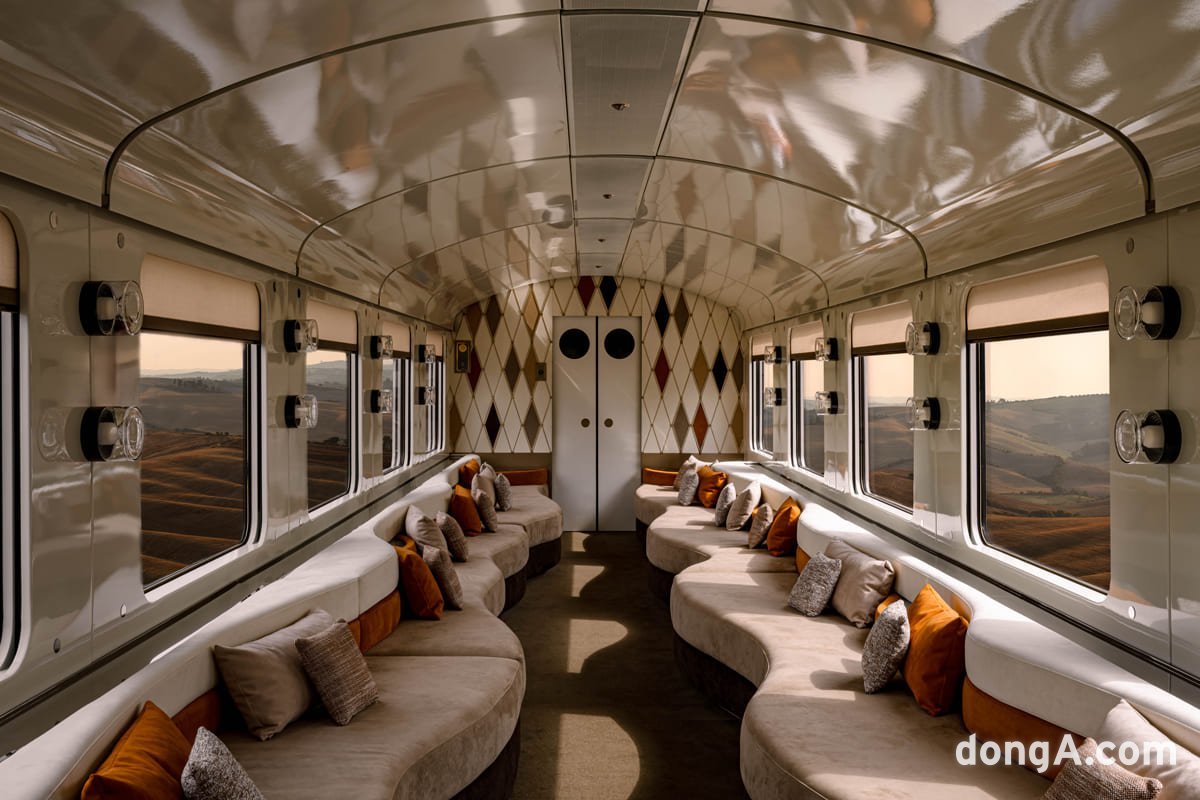 오리엔트 익스프레스의 ‘라 돌체 비타’ 열차 알칸타라 인테리어. 알칸타라 제공