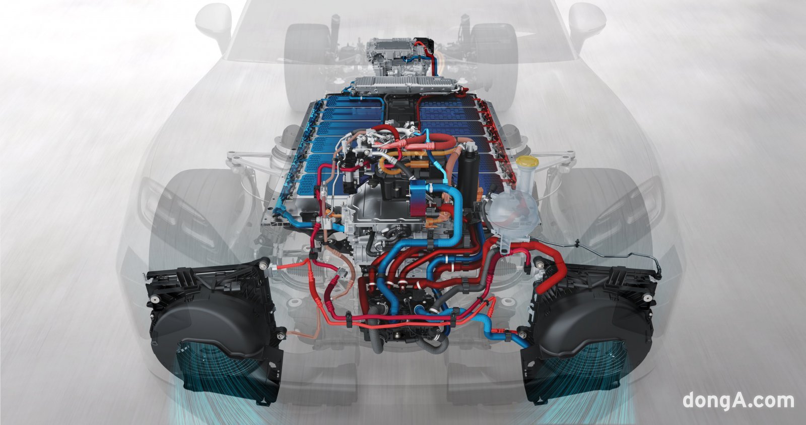 카이엔 일렉트릭의 고전압 시스템의 핵심 요소 중 하나는 배터리 상하단 온도를 정밀 제어하는 혁신적인 양면 냉각 시스템이다. 날씨, 충전 출력, 주행 스타일에 관계없이 배터리를 항상 최적의 온도 범위로 유지해 정밀한 온도 제어가 가능하다. 냉각 성능은 냉장고 100대에 해당한다. 기존 흡입 팬보다 에너지를 약 15% 덜 소비하는 고효율 압력 팬을 처음으로 사용한다. 이를 통해 에너지 손실을 최소화하면서도 높은 충전 성능과 안정적인 주행 퍼포먼스를 지속적으로 유지해 효율성을 극대화한다.