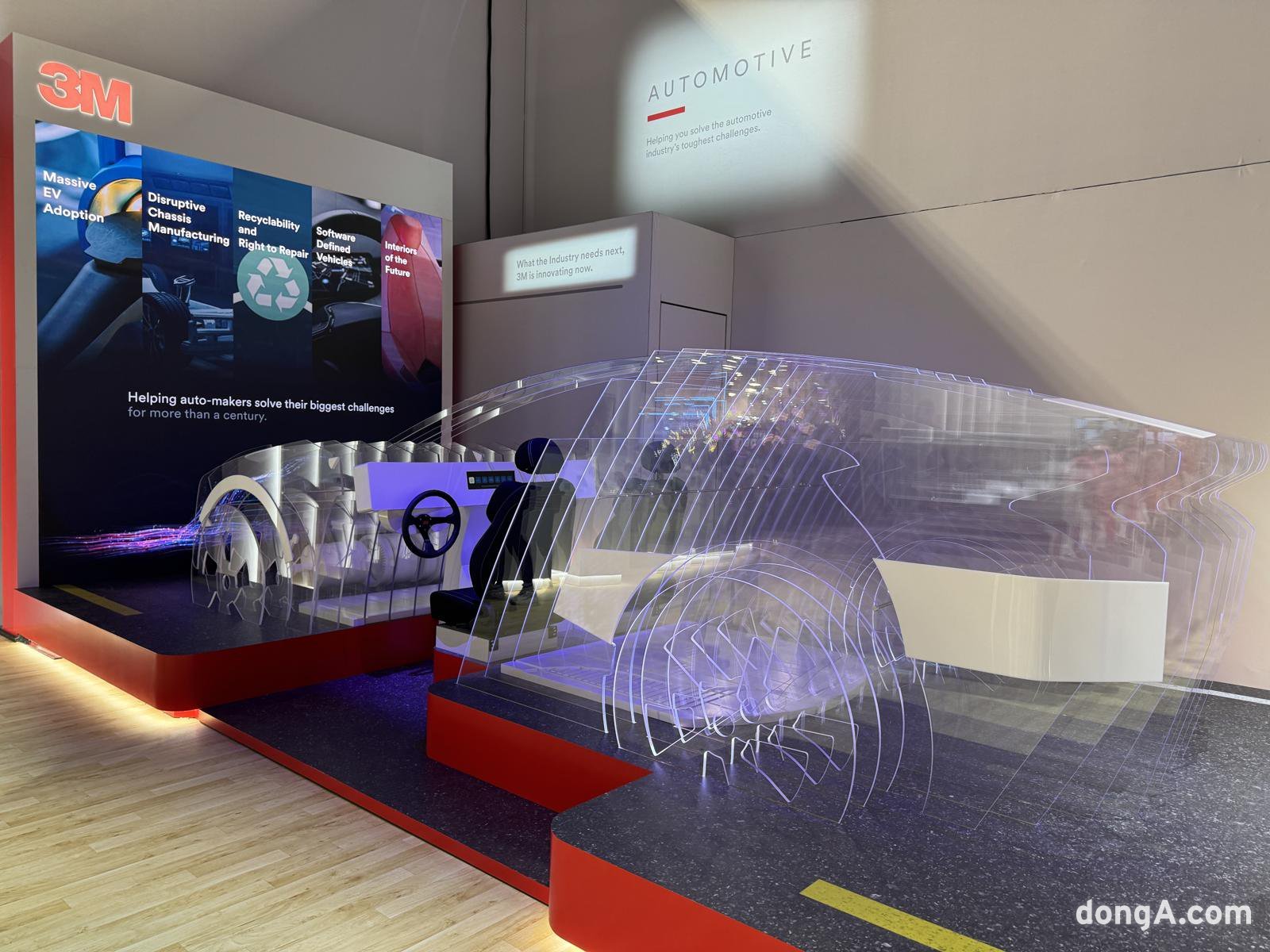 이날 현장에서 만난 아냐 발케 3M 커뮤니케이션 슈퍼바이저는 “자동차 산업에서는 전동화와 배터리 차량, 섀시 설계 및 제조 혁신, 미래형 인테리어 변화가 핵심 트렌드”라며 “소프트웨어 정의 차량으로 전환되면서 전자 장치와 디스플레이 기술의 중요성이 커지고 있고, 3M은 전자 산업에서 축적한 경험과 소재 기술을 자동차 산업으로 확장하고 있다”고 말했다. 이어 “3M은 하드웨어와 소재를 통해 차량 내 소프트웨어 구현을 지원하는 기업”이라고 덧붙였다.