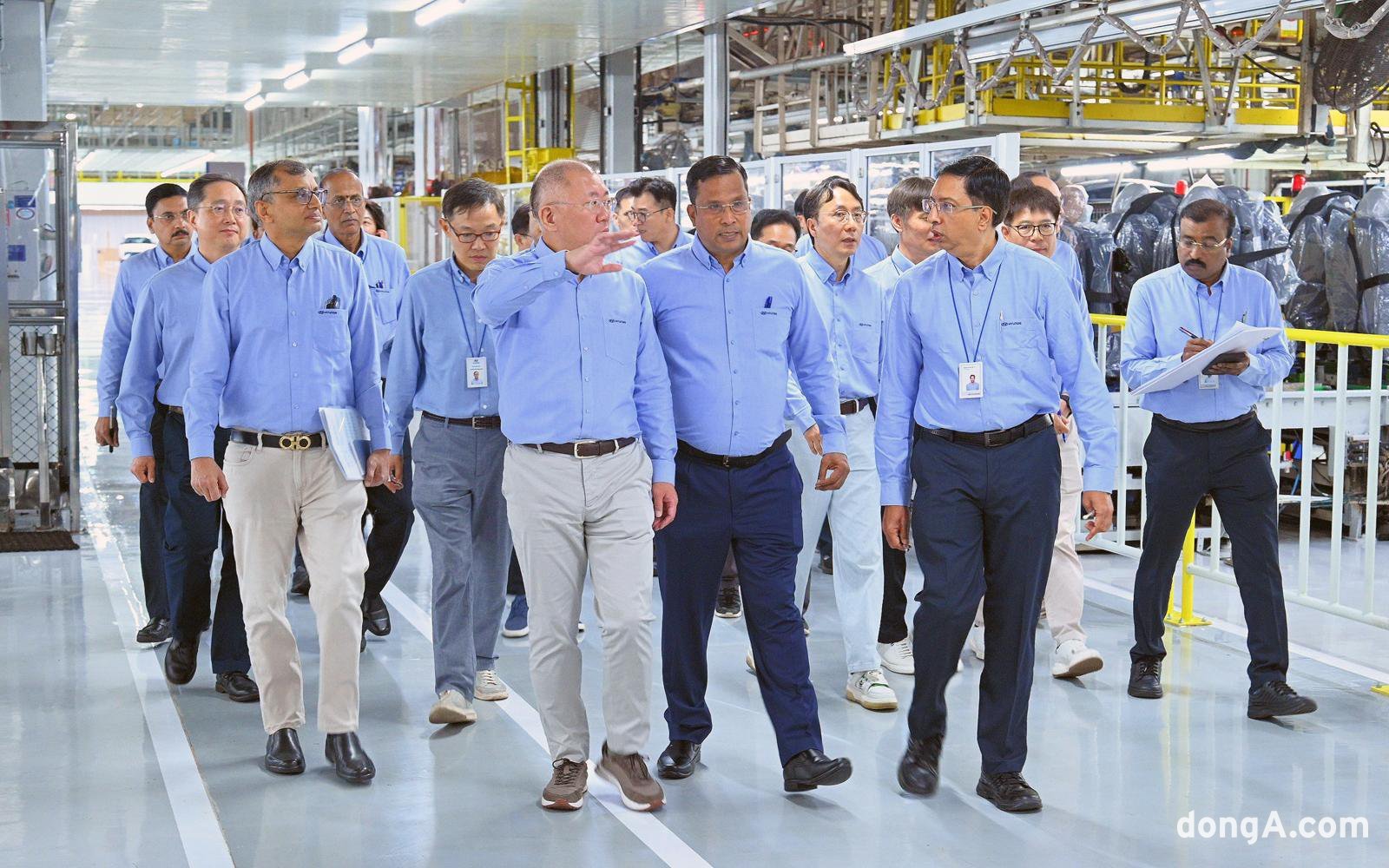 정의선 회장은 지난 12일부터 13일까지 이틀동안 인도 동남부에 위치한 현대차 첸나이공장, 인도 중부의 기아 아난타푸르공장, 인도 중서부의 현대차 푸네공장을 차례로 찾아 현지 생산 판매 현황과 중장기 발전 전략을 점검했다.