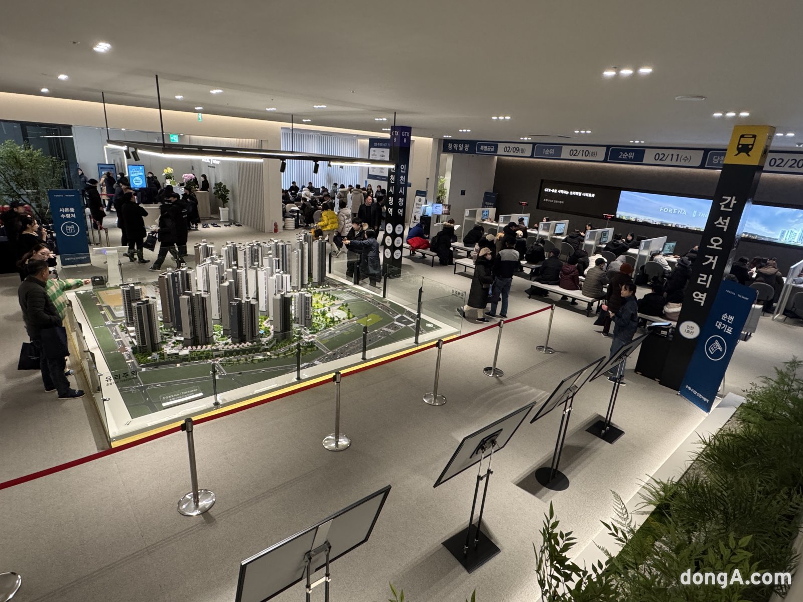 인천 남동구 상인천초등학교 인근 간석동 일대가 재개발 ‘포레나 더샵 인천시청역’으로 거듭난다. 지하 4층~지상 최고 35층, 총 24개 동, 2568가구 규모 대단지로 조성된다. 최근 인천 도심 내 신규 공급이 드물었던 만큼 6일 본보기집 개관 첫날부터 실수요자 발길이 꾸준히 이어졌다.