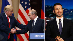 미국에서 오후 10시 반∼11시쯤 TV를 틀면 심야 토크쇼가 시작합니다. ‘호스트’로 불리는 진행자는 초대 손님을 부르기 전 10분 정도 방청객을 앞에 두고 혼자 ‘썰’을 푸는, ‘모놀로그’(독백)를 합니다. 호스트의 인기는 모놀로그에서 얼마나 뛰어난 입담을 과시하느냐에 달렸습니다. 요즘 모놀로그의 최고 화제는 얼마 전 핀란드 헬싱키에서 열린 미-러 정상회담 기자회견에서 극도의 저자세를 보여준 도널드 트럼프 미국 대통령입니다. △“Putin is Trump’s KGBFF.” 올해 아카데미상 시상식 사회를 맡았던 코미디언 지미 키멀의 모놀로그 일부입니다. ABC방송의 ‘지미 키멀 라이브’를 진행하는 그는 블라디미르 푸틴 러시아 대통령을 트럼프의 ‘KGBFF’라고 소개합니다. ‘BFF’는 ‘영원한 절친’을 뜻하죠. KGB(옛 소련 비밀경찰) 출신의 푸틴이 트럼프의 영원한 절친이라는 뜻입니다. 이 신조어가 얼마나 인기 있는지 미국에서는 ‘KGBFF’라고 적힌 티셔츠가 불티나게 팔리고 있습니다.