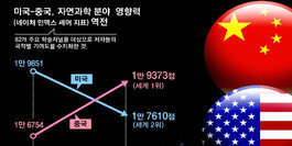 네이처가 올 6월 발표한 ‘네이처 인덱스 셰어’에서 지난해 중국의 자연과학 연구영향력은 미국을 추월해 1위로 올라섰습니다. 중국은 전년 대비 21.4% 증가한 1만9373점을 받았습니다. 반면 미국은 6.9% 감소한 1만7610점에 머물렀습니다. 자연과학 분야에서 중국 논문의 양은 이미 2017년부터 미국을 앞섰다고 하는데, 이런 지표는 ‘논문의 질’까지 중국이 미국을 뛰어넘었다는 것을 의미한다고 합니다.