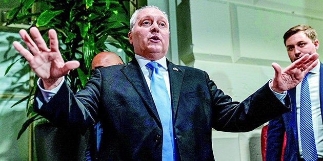 《美 하원의장 후보 하루만에 사퇴… 또 의회 흔든 ‘프리덤코커스’ 미국 공화당의 하원의장 후보로 선출된 스티브 스컬리스 원내대표(사진)가 12일(현지 시간) 의장 도전 의사를 접었다. 공화당 의원 221명 중 강경파 20여 명이 스컬리스를 반대하면서 하원 전체 433석 중 과반(217표) 확보가 불확실해졌기 때문이다. |