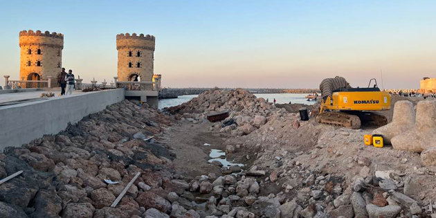 《지난달 30일(현지 시간) 지중해에 면한 이집트 제2도시 알렉산드리아를 찾았다. 해변 곳곳에 대형 방파제와 콘크리트블록 등이 가득했다. |