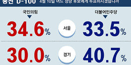 올해 4월 10일 치러지는 국회의원 총선거가 오늘로 딱 100일 남았습니다. 전체 지역구 의원의 절반 가까이를 뽑는 수도권 선거에서 이기지 못하면 제1 당이 되긴 어렵습니다. 동아일보의 수도권 여론조사 결과 국민의힘과 더불어민주당이 서울과 인천에서 오차범위 내에서 팽팽한 접전을 벌이고 있는 것으로 나타났습니다.