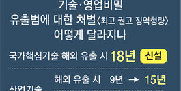기술 유출은 초범이어도 봐주지 않고 실형 선고를 권고하고, 유출이 미수에 그쳤어도 빼돌린 기술을 완전히 반환해 폐기하지 않으면 형을 깎아주지 않기로 했습니다. 산업기술 유출에 대한 양형 기준이 법정 최고형에 비해 크게 낮아 ‘솜방망이 처벌’이라는 논란이 일자 양형위원회가 권고 형량을 대폭 상향한 겁니다.