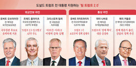 한국 정부도 달라진 ‘트럼프 2.0’ 시대에 대비하기 위해 트럼프 집권 2기 구상을 세우고 있는 외교안보라인과 통상라인 등 주요 인물을 예의주시하고 있다고 합니다. 오늘자 동아일보엔 ‘팀 트럼프 2.0’의 외교안보라인과 통상라인에 누가 포진하고 있는지, 그들이 어떤 생각을 갖고 있는지에 대한 상세한 정보가 담겨 있습니다. |